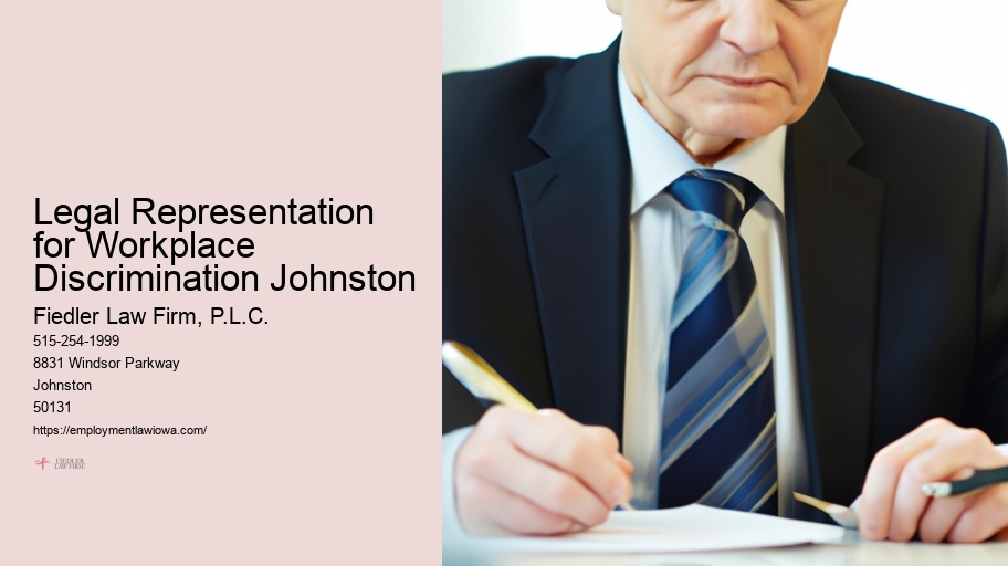 This level of honesty fosters trust and reassures clients that they're in capable hands. C. Learn more about Employment Lawyer Johnston here. Text before the meta title text for each paragraph Legal Representation for Workplace Discrimination Johnston Text after the meta title text paragraph has garnered numerous accolades, showcasing their unparalleled expertise in employment law.