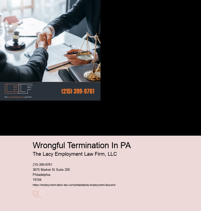 Whether it's discrimination, harassment, wrongful termination, or any other form of workplace injustice, Lacy Employment Law Firm LLC doesn't back down. Their expertise also extends to situations involving retaliation against employees who've exercised their legal rights, such as filing a complaint or participating in an investigation. Building on the foundation of hazard prevention measures, workplace safety compliance further secures employees' well-being by adhering to stringent legal and regulatory standards. Throughout the entire process, the Lacy Employment Law Firm maintains clear communication with their clients, ensuring they're informed and comfortable every step of the way. Learn more about Wrongful Termination In PA here