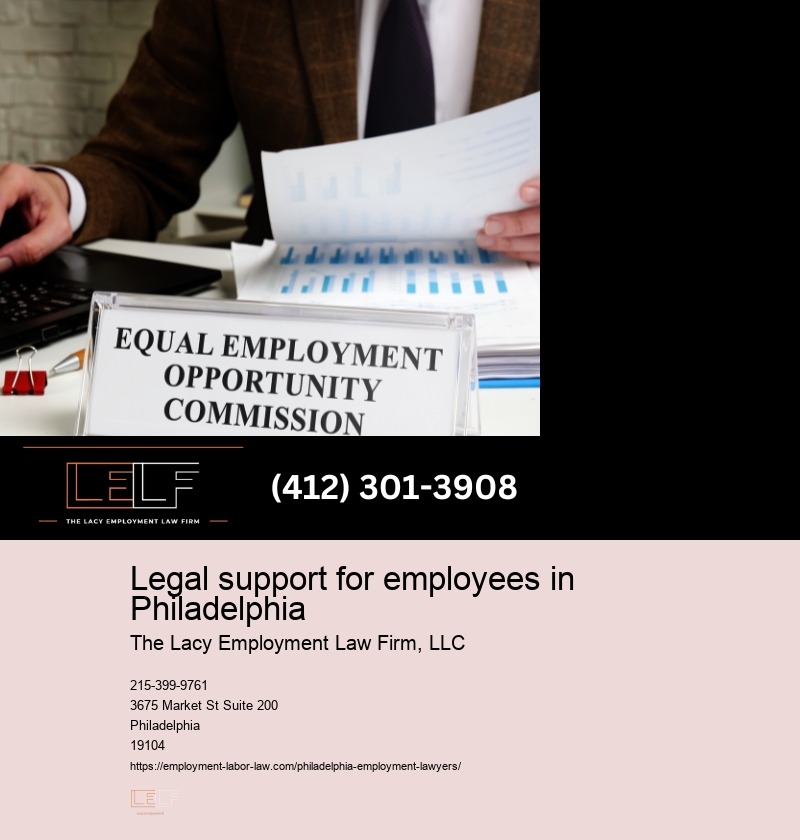 We understand the risks you face when you decide to expose unethical or illegal activities, and we're here to ensure you're shielded from retaliation. We're dedicated to promoting fair employment practices and making a positive impact in the workplace. Read more about Employment Lawyer in Philadelphia here. Text before the meta title text for each paragraph Legal support for employees in Philadelphia Text after the meta title text paragraph They specialize in a wide range of issues, from wrongful termination to discrimination and beyond. If you've faced unfair treatment at work due to your race, gender, age, religion, or any other protected characteristic, you're not alone.