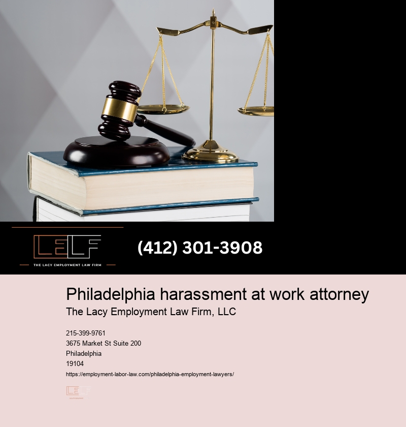 At Lacy Employment Law Firm, we champion your rights as an employee, ensuring you're treated fairly and respectfully in the workplace. At Lacy Employment Law Firm, we believe in the power of prevention. With Lacy Employment Law Firm by your side, you're not just getting legal expertise; you're gaining a partner who's committed to securing the justice and compensation you rightly deserve. Read more about Employment Lawyer in Philadelphia here. Text before the meta title text for each paragraph Philadelphia harassment at work attorney Text after the meta title text paragraph You're also entitled to fair wages for the work you do, including overtime pay if you work more than the standard hours. We don't just represent you in court; we're your partners in understanding your rights and options.