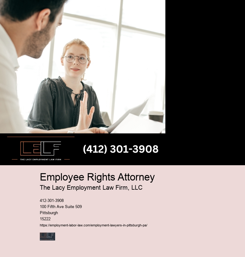 We also recognize that this issue isn't just about legality; it's about fairness and respect in the workplace. Pittsburgh employment law best practices We understand how these matters can significantly affect your livelihood and we're committed to fighting for your rights. But back in the real world, we at The Lacy Employment Law Firm LLC stand as Pittsburgh's trusted employment lawyers.