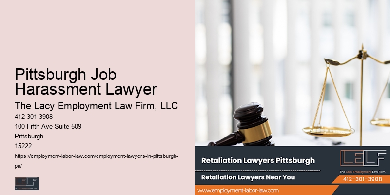 It's not just about knowing when to fight back; it's about knowing how to protect your rights proactively in the workplace. Read more about Lacy Employment Law Firm here. In essence, The Lacy Employment Law Firm, LLC, is dedicated to becoming an even stronger ally for Pittsburgh Job Harassment Lawyer's workforce. You'll find them hosting free legal clinics to educate workers about their rights and how to protect themselves in the workplace. Learn more about Pittsburgh Job Harassment Lawyer here With years of dedicated experience, they're not just any legal team.
